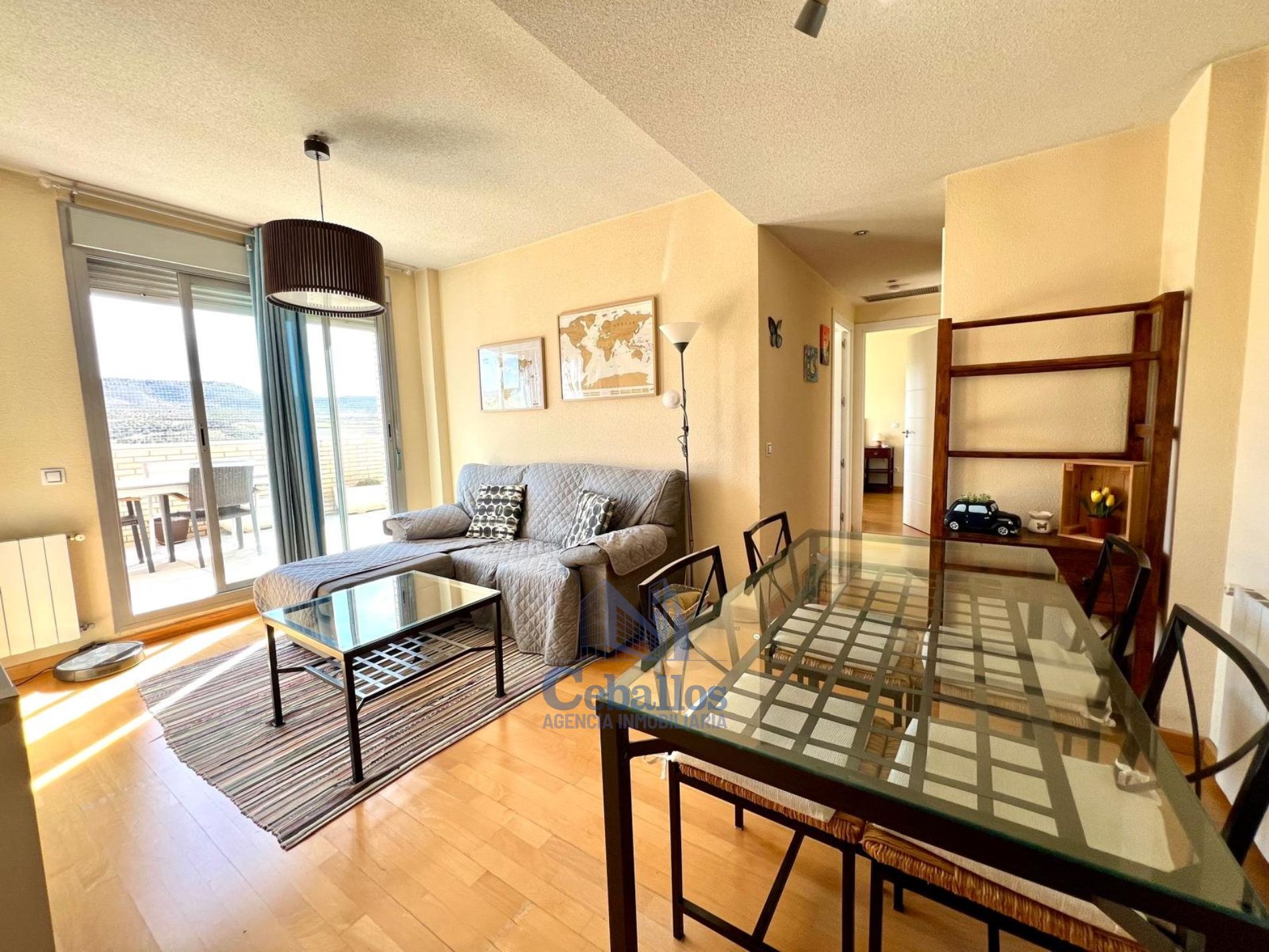 Si estás buscando un ático excepcional, te presento esta joya ubicada en la zona Nueva de Guadalajara, España. Este ático, con una superficie de 68m², no solo te ofrece comodidad sino también una vida plena con todas las facilidades al alcance de tu mano. El salón comedor es espacioso y rebosa de luz natural, creando un ambiente acogedor y perfecto para tus momentos de descanso o esas reuniones especiales con amigos y familia. La cocina, completamente amueblada, te brinda todo lo necesario para que despliegues tus habilidades culinarias en un espacio práctico y elegante. El ático cuenta con dos dormitorios, ambos con armarios empotrados que maximizan el espacio y proporcionan un almacenamiento elegante y funcional. El baño está completamente equipado, ofreciendo funcionalidad y un diseño cuidado. Uno de los puntos fuertes de esta propiedad es su amplia terraza. Accesible desde varias estancias, es el lugar ideal para disfrutar del aire libre y relajarte bajo el sol, ofreciéndote vistas que invitan a la tranquilidad. No tendrás que preocuparte por el aparcamiento ya que el ático incluye plaza de garaje y, para mayor comodidad, también dispone de un trastero, ideal para almacenar aquellos elementos que no usas a diario. La calefacción individual de gas natural asegura un ambiente cálido en los días más fríos del año y el suelo de tarima añade un toque de calidez y modernidad a todo el espacio. Este ático no solo te ofrece un hogar, sino un estilo de vida con todos los servicios necesarios a tu alcance: supermercados, colegios, centro de salud y los mejores restaurantes de la zona, todo ello a pocos minutos del centro y con fácil acceso a la nacional A-2. ¿Te imaginas viviendo aquí? Este fantástico ático podría ser tu nuevo hogar. No dejes pasar esta oportunidad.